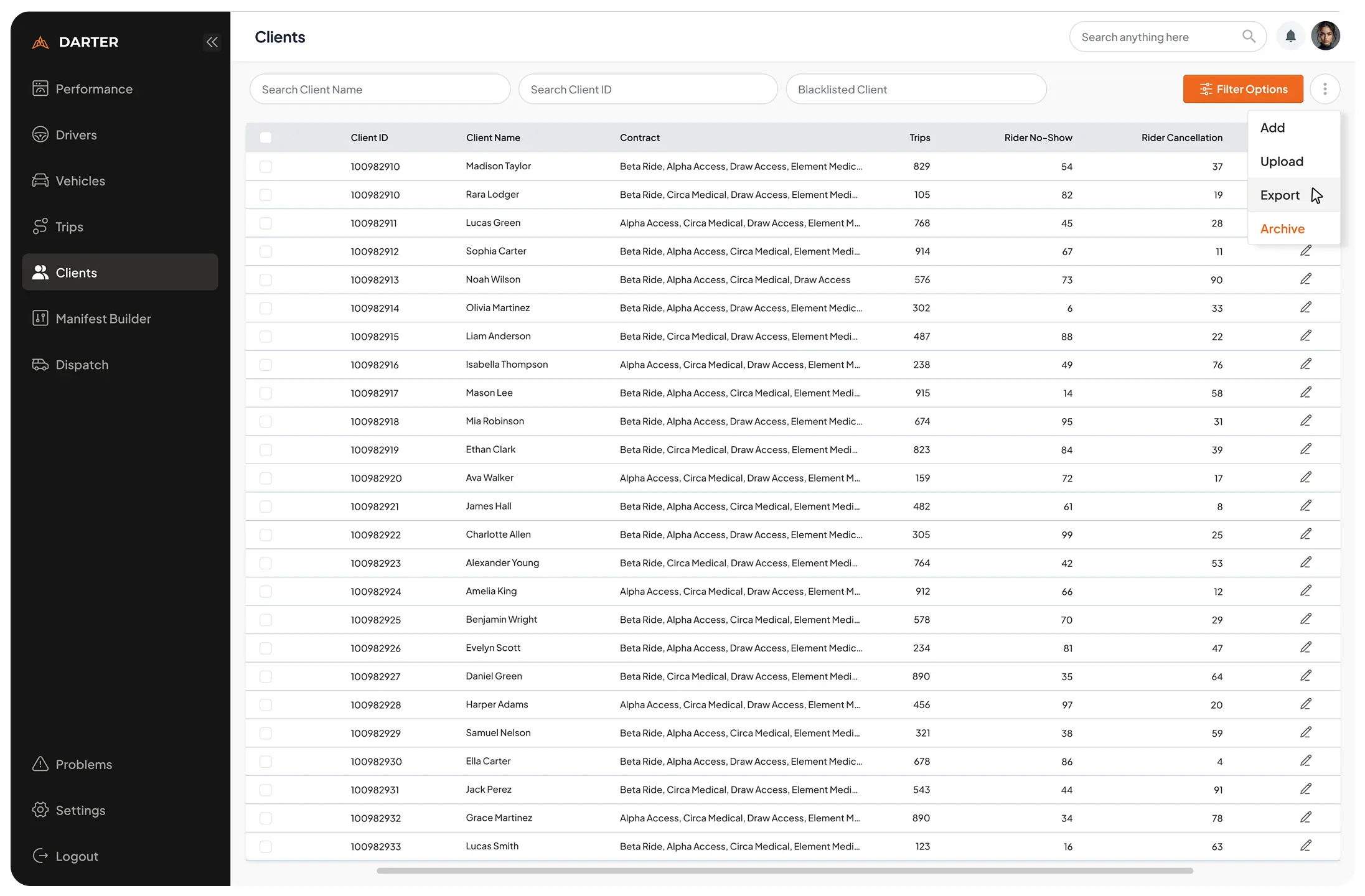 See everything. Miss nothing. Darter puts every trip, provider, and program in one place. Spot issues before they escalate. Coordinate across vendors without disruption. Scale as your community grows. Clear data, smoother operations, confident decisions.